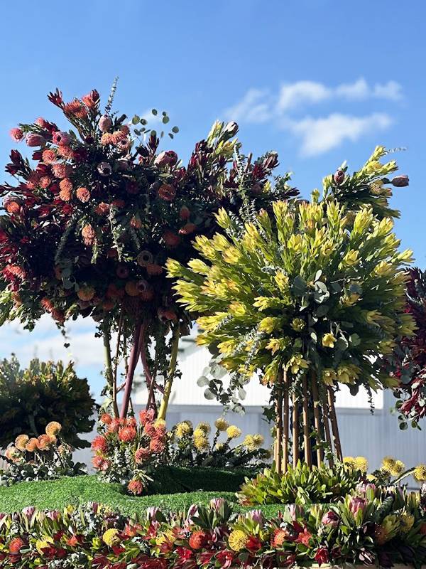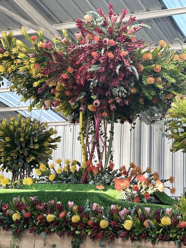 Base del Carro: La base del carro está diseñada para simbolizar el inicio del viaje personal, donde el crecimiento y el empoderamiento comienzan a tomar forma. Las leucospermum son las protagonistas, representando la fortaleza para enfrentar momentos difíciles, esos que parecen cuesta arriba pero que, al final, nos llevan al éxito y la grandeza. Desde la base, un vibrante paisaje de colores comienza a ascender por el tronco del árbol central, evocando el esfuerzo y la dedicación necesarios para florecer. Este ascenso simboliza que, incluso en los momentos más oscuros, siempre hay un camino, una luz o un color que nos guía hacia el florecimiento personal. Nos recuerda que, a pesar de la adversidad, siempre es posible encontrar belleza y fuerza para seguir adelante.